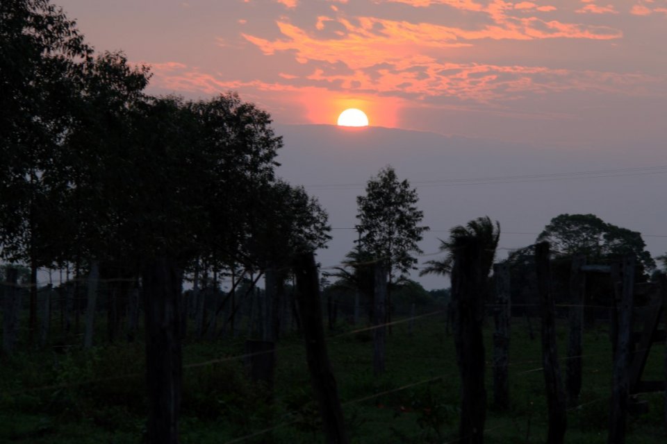 O entardecer é mágico, araras, maritacas, anacãs, capivaras, vacas, pássaros de todas as espécies, voltam para seus cantos e o sol se despede lentamente deixando suas cores avermelhadas que se misturam com o verde das matas. Não se vá! Não se vá!